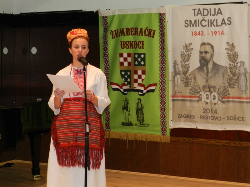 Kroz program je umješno vodila Alenka Crljenica, koja je pročitala i odabrane stihove omiljenih žumberačkih pjesnika Jovana Hranilovića i Marka Vukasovića. Na početku priredbe nazočne su pozdravili urednica knjige i predsjednica jaskanskog Ogranka Matice hrvatske Klementina Škrabe te Željko Hranilović, tajnik „Uskoka“ i potomak obitelji Tadije Smičiklasa. U ime Grada Jastrebarskog prisutne je pozdravio zamjenik gradonačelnika Stipe Bučar, u ime Općine Žumberak načelnik Zdenko Šiljak, a u ime Braće Hrvatskog Zmaja Ivan Nađ.