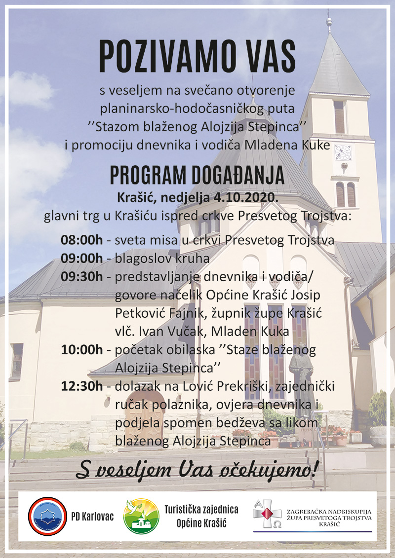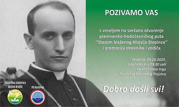 Nakon blagoslova plodova u 09.30 sati uslijediti će blagoslov i svečano otvaranje Planinarsko-hodočasničke staze ‘Staza blaženoga Alojzija Stepinca’, nakon kojega slijedi obilazak iste od 1. postaje u Krašiću uz kapelu Svetog Ivana Krstitelja i kip Svete Ane preko Hrženika do Jezerina i preko Careve Drage na kraju do 5. postaje kod prekrasnog vidikovca na Loviću Prekriškom na području Ozlja.