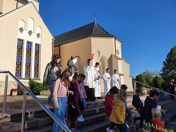 Osim blagoslova plodova njiva, na jutarnjoj svetoj misi velečasni Vučak zazvao je blagoslov Duha svetoga na sve učenike, učitelje i profesore Osnovne škole.
