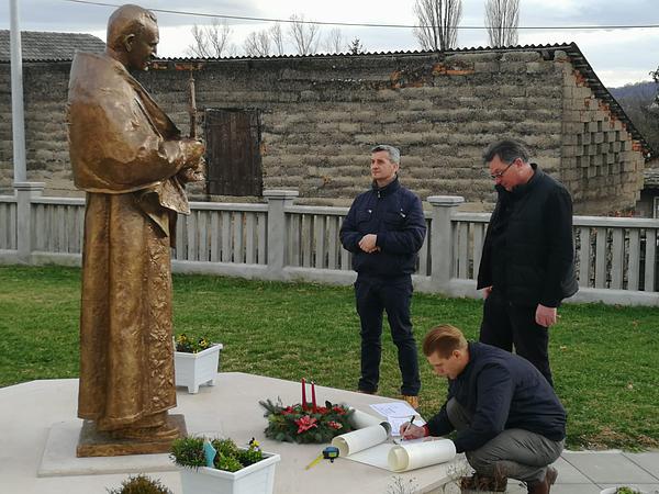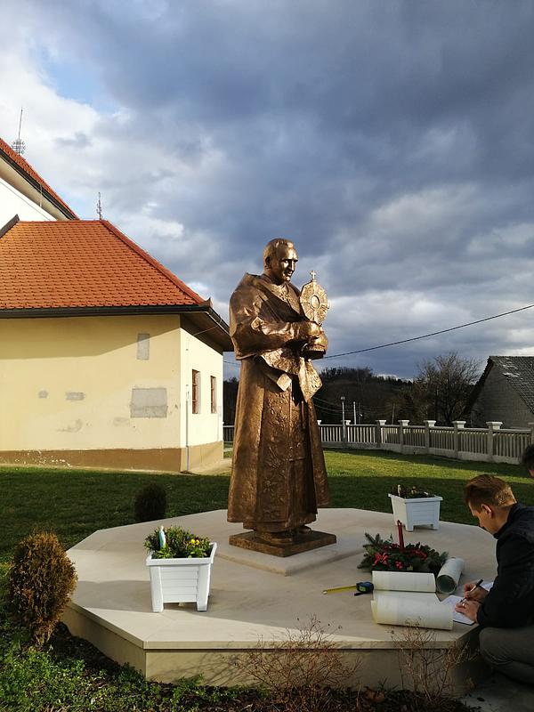 Sastanku su nazočili osim načelnika Općine, autor spomenika akademski kipar Tomislav Kršnjavi, monsinjor Nedeljko Pintarić, te izvođač potrebnih radova.